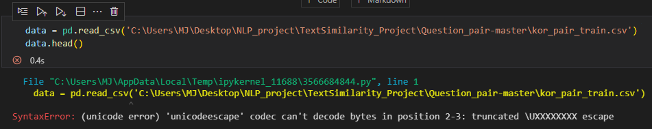 이번에는 판다스로 로컬에 있는 csv파일을 불러오려다 또 만나게 되었는데 간단한 해결법을 알게 되어 공유한다.