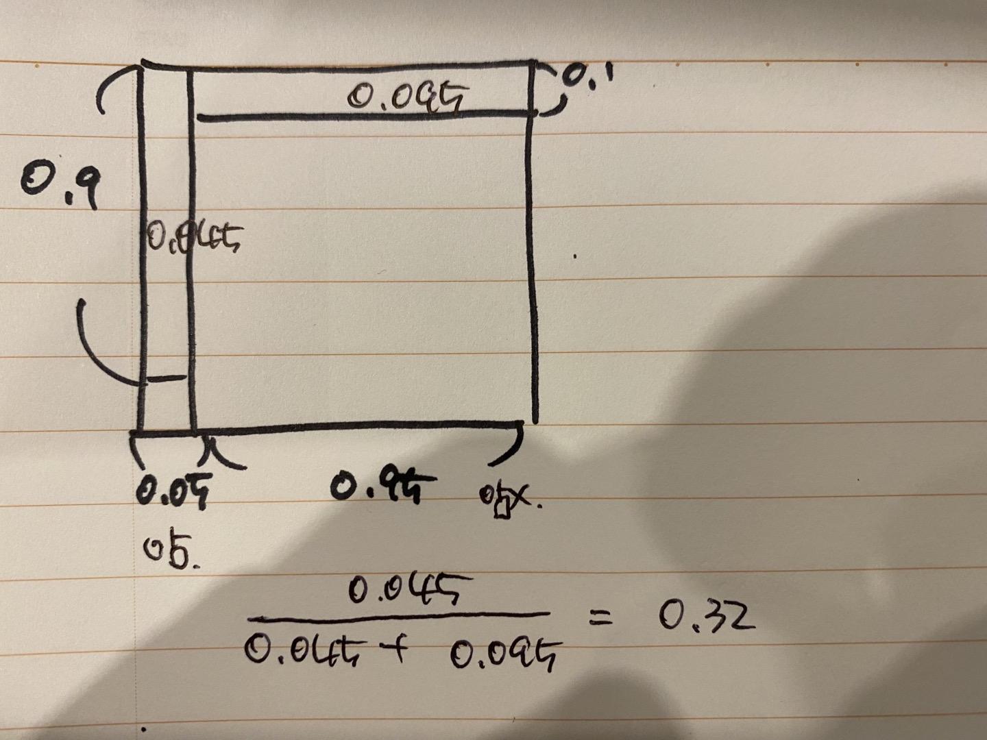 왼쪽의 사각형 그림을 통해서 계산해보면 0.3/(0.3 + 0.1) = 0.75