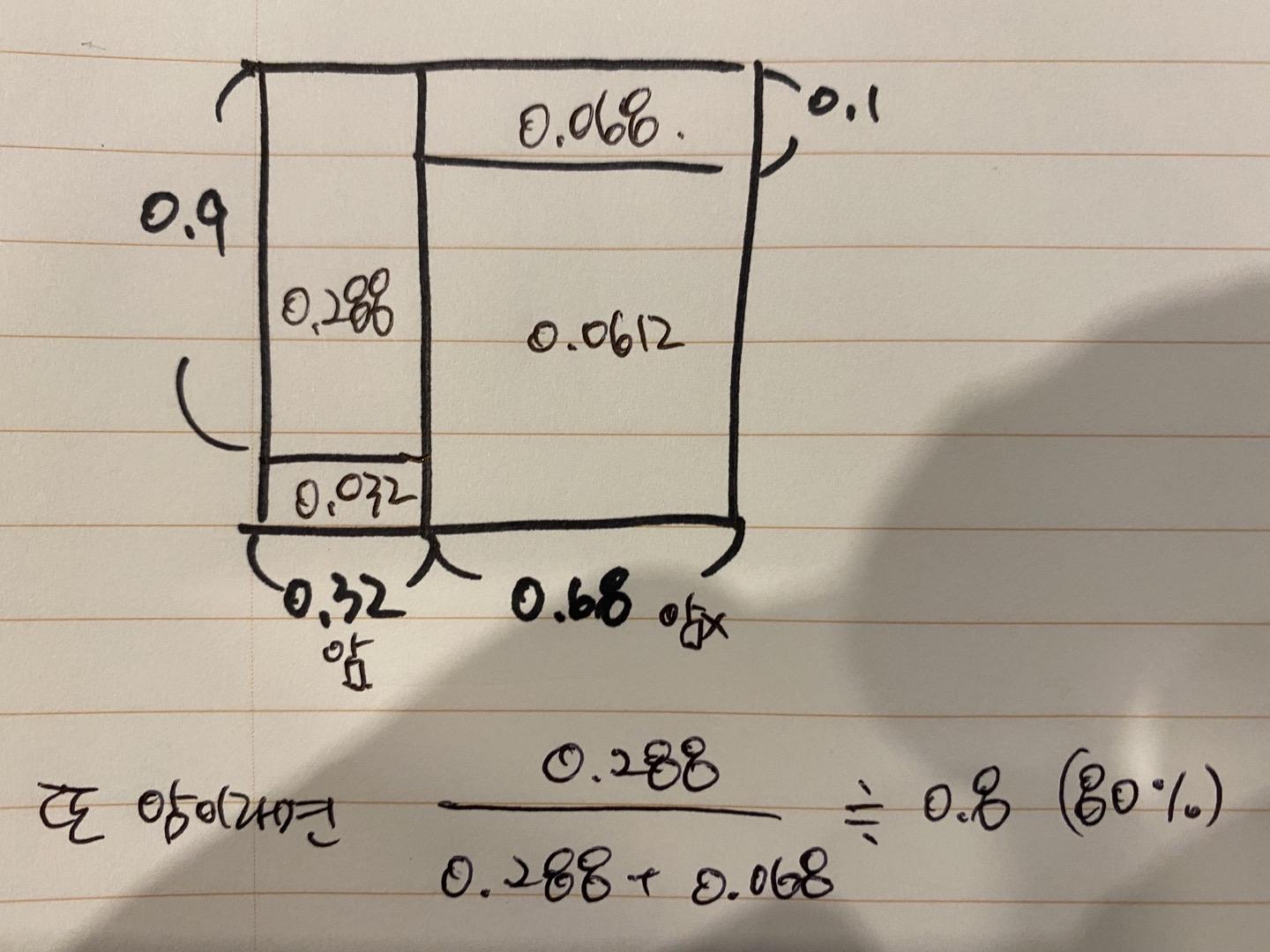 이렇게 다른 이유는 사전확률이 다르기 때문이다.