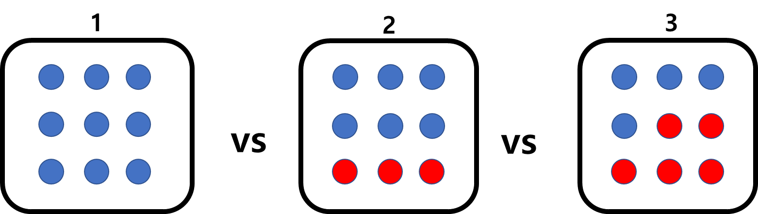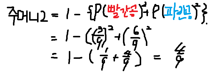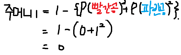 당연히 파란공만 포함되어 있는 주머니가 순도가 100%이니깐 불순도가 가장 낮고 빨간공이 3개 있는 주머니가 그다음으로 불순도가 낮고 빨간공이 5개인 주머니는 가장 불순도가 높을 것이다.