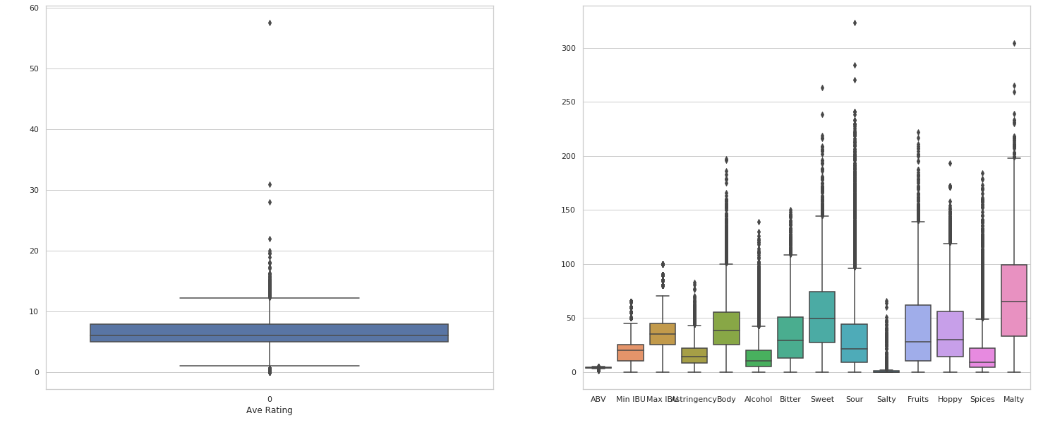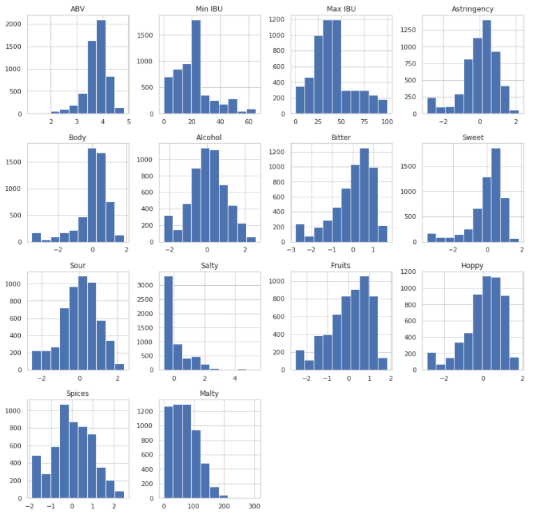 - 맛 특성들이 객관적인 성분검사를 통해서 나온 값들이 아니라 맥주를 시음한 뒤 맛에 대한 평가에서 나온 단어들의 수를 나타내는 것이므로 상당히 주관적일 수 밖에 없습니다.