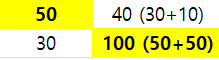 아래의 경우는 50+50 > 30+10 이므로 100을 출력해주면 됨